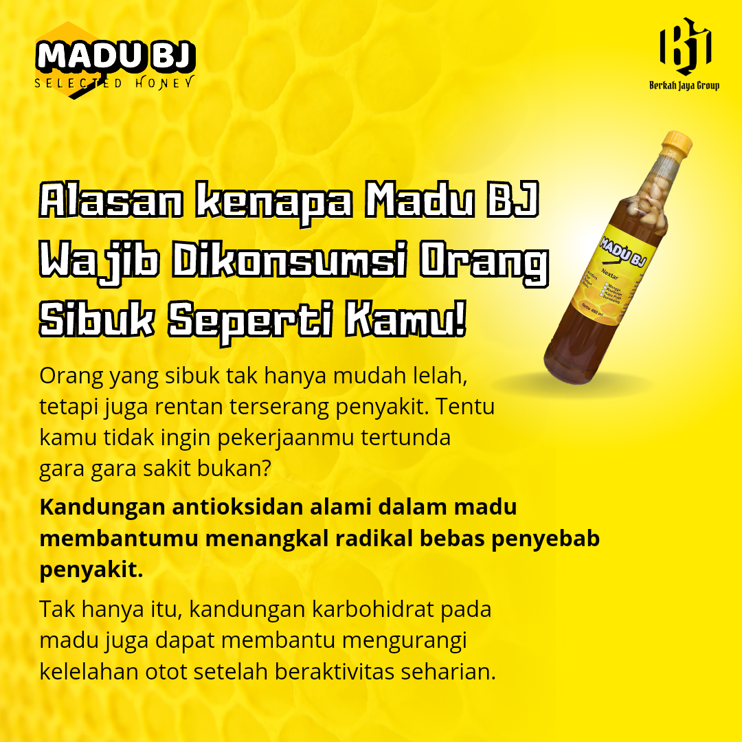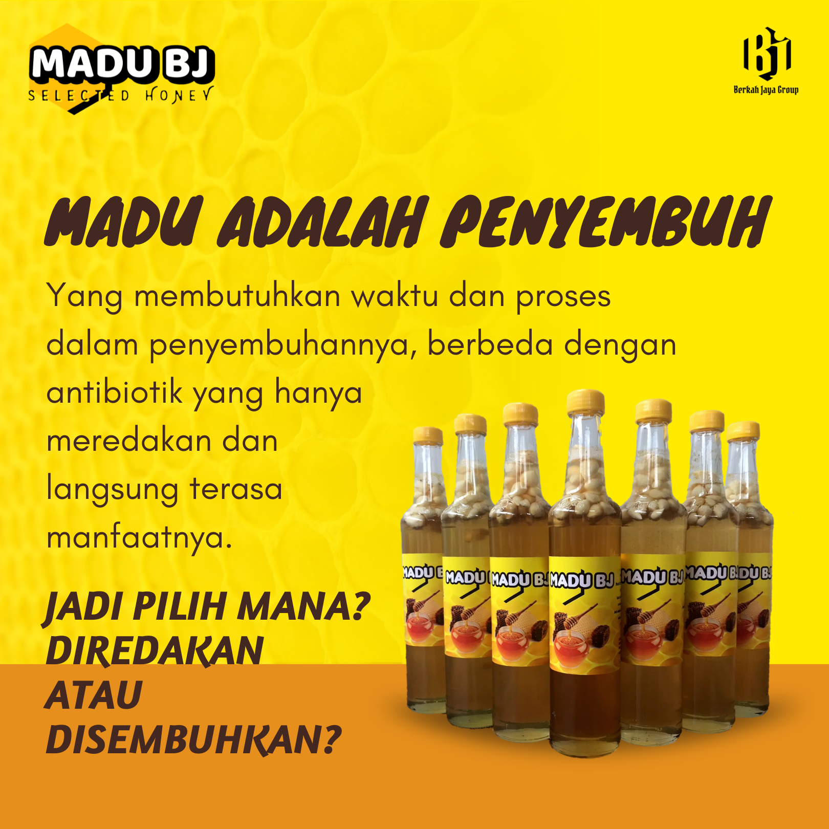 Madu Berkah Jaya adalah madu mentah (raw honey) yang diambil langsung dari peternakan lebah, dipanen, dan dikemas tanpa proses pemanasan sehingga kandungan enzim dan nutrisinya masih utuh, sangat bagus untuk pengobatan dan juga menjaga kesehatan tubuh.